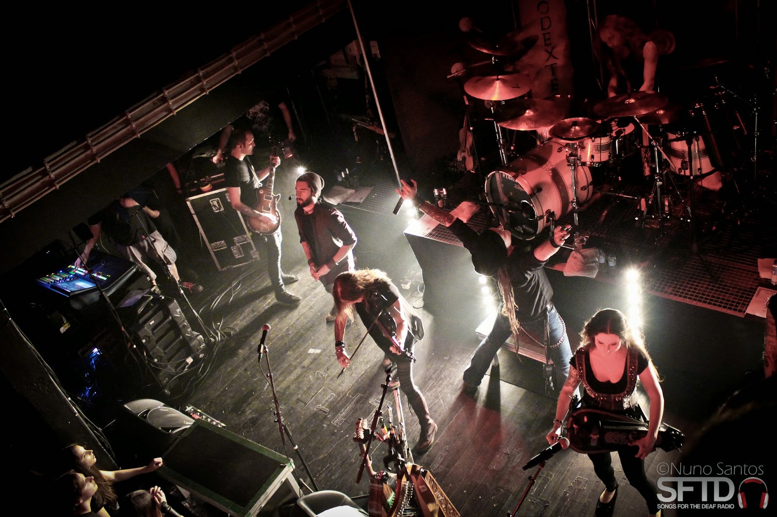 A banda apresenta-se em palco com 8 membros juntando aos tradicionais instrumentos do metal, violinos, mandola, flautas, hurdy-gurdy entre outros, produzindo assim uma sonoridade complexa e evoluída que facilmente flui por entre o público, conquistando-o. Foram recebidos por uma sala completamente esgotada e cedo se notou a comunhão entre a banda e o público. Este correspondia sempre aos apelos e interações do vocalista e multi-instrumentalista Chrigel Glanzmann, numa relação simbiótica que provocava libertações equivalentes de energia na plateia e no palco. Os primeiros acordes de ‘KING’ demonstraram que o novo álbum Origins não era desconhecido dos presentes e deu o mote para uma setlist que não só serviu para apresentar o seu novo trabalho como viajar pela sua basta discografia, tendo tocado temas de todos os 6 álbuns. A banda com excelência alterna o foco dos instrumentos permitindo que os vários músicos se evidenciem, isso é visível em temas mais antigos como ‘Thousandfold’ ou recentes como ‘From Darkness’, ambos muito bem recebidos.