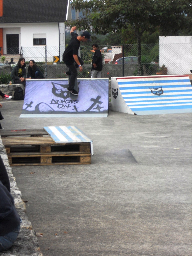 Aproveitámos este momento para espreitar a zona de skate proporcionada por Demon´s Owl Academy e assitímos a uns truques da crew de Bita San, vocalista dos Mr. Miyagi, que se animou com os colegas e permitiu um bom momento de brincadeiras nos obstáculos e rampas montadas, na entrada do palco principal, que já se preparava para o 2º round de concertos.