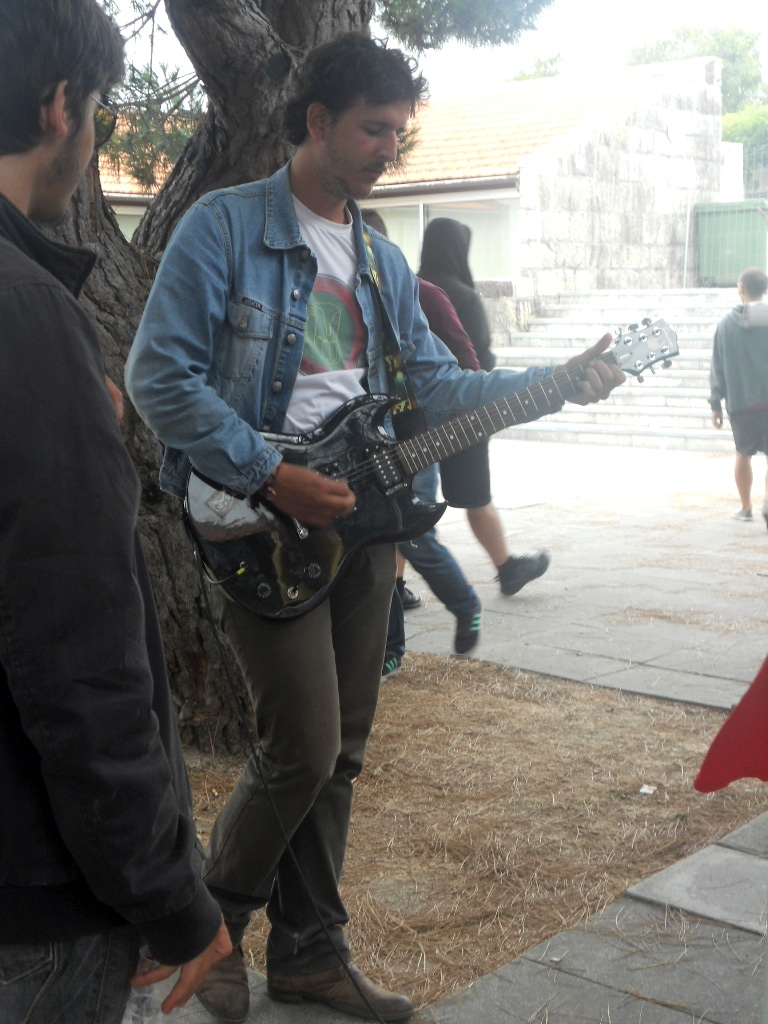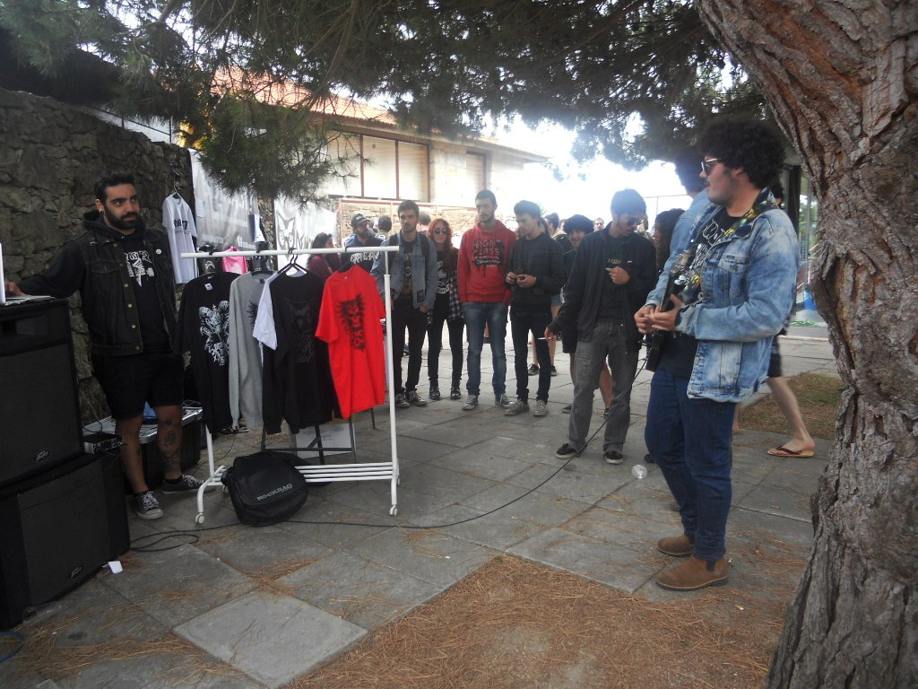 A pedido de muitas famílias, Vitor Vaz, músico dos The Dead Academy, entretanto na sua banca de merch Demon´s Owl, retoma a brincadeira feita na edição anterior, com o seu overplay de guitarra e acompanhando a música saída de um laptop, permitiu a quem quisesse, dedilhar livremente umas malhas numa guitarra, contribuindo assim para a animação da zona. Sem ser em formato de concurso como o ano passado, surge um convite ocasional ao Zé Gomes dos Killimanjaro, que não resistiu em dar-nos uns riffs rasgados na guitarra provocando sorrisos nos transeuntes entre o recinto do Pool Stage e as tascas de comes e bebes, aos quais se juntavam os simpáticos Galatic Superlords que aproveitavam ao máximo o festival. Sempre que o tempo permitia, a esperança que o ambiente ia ser mais festivo, aumentava. Um momento divertido entre amigos músicos, neste festival!Recinto merch, Pool Stage,fotos by Stanana