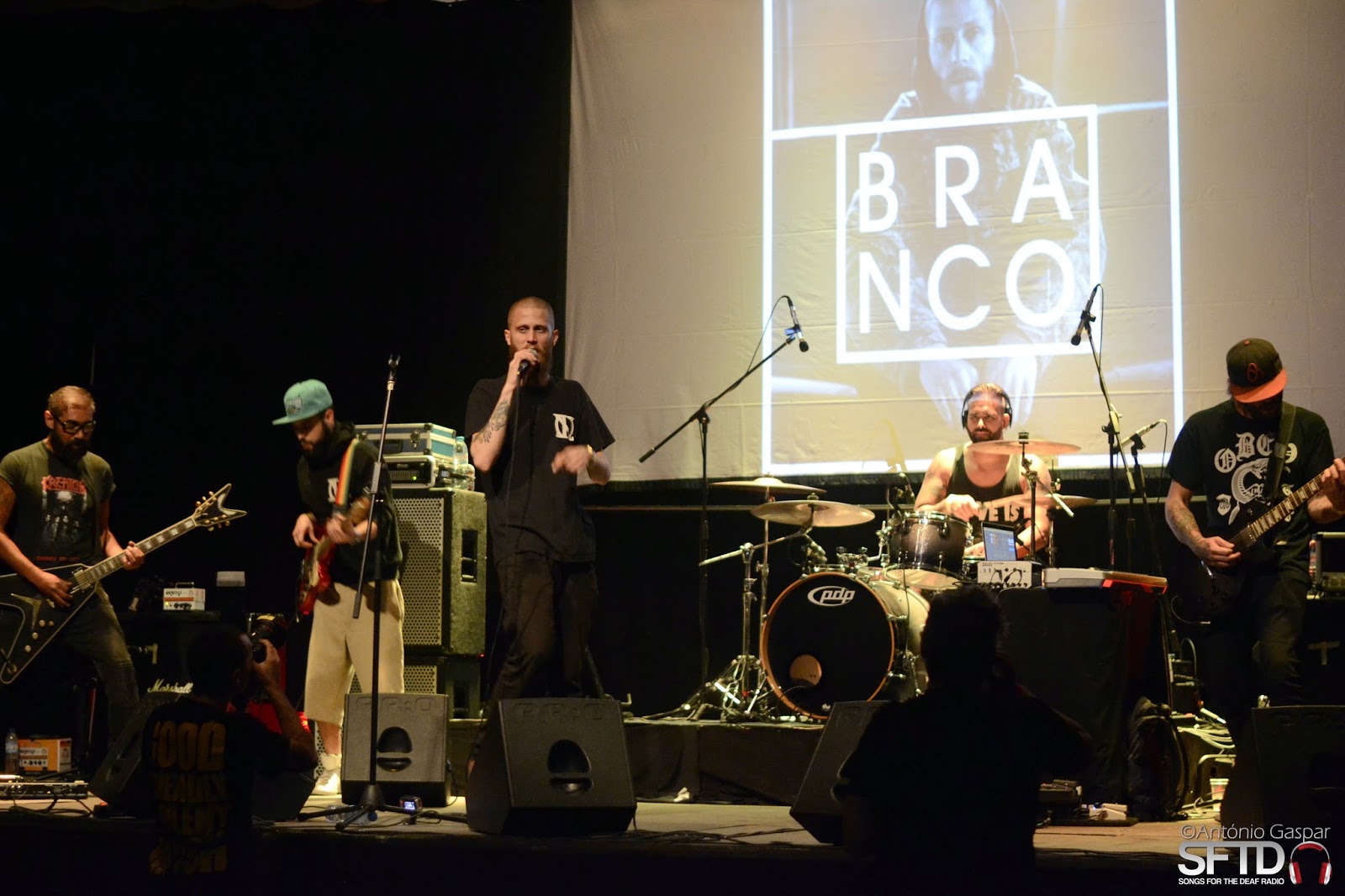 Seguiu-se Branco, para nós, a surpresa (agradável) da noite. Não esperávamos uma associação tão interessante entre o rock e o hip hop e, mais ainda, não contávamos ficar inebriados pelas notas do sampler, enquanto tentávamos, em simultâneo, absorver o conteúdo das letras. Como se isso não bastasse, ainda sentimos a força das guitarras a acompanhar a carga emotiva da mensagem. Se a qualidade do som tivesse permitido captar toda esta informação com maior definição, provavelmente, haveria lugar a arrepios. Guardámo-los para a audição do álbum de estreia “Camelot”, lançado este ano, e desta atuação, destacamos a faixa “Pnm” (Palavras não Magoam), da qual gostámos particularmente.
